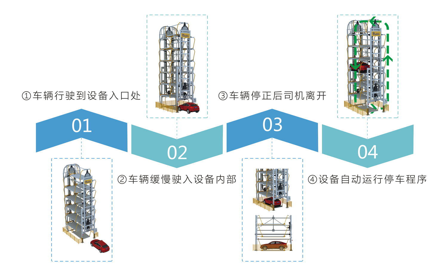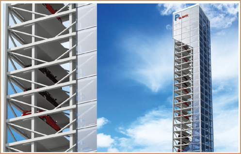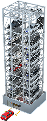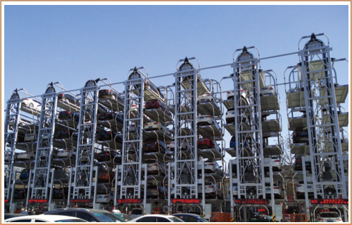 垂直升降類機(jī)械式停車設(shè)備亦可稱之為“塔庫”,主要通過升降裝置的升降和裝在升降裝置上的智能搬運(yùn)器將車輛搬運(yùn)至固定車位上,從而實(shí)現(xiàn)車輛的存取。