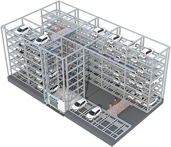 通過升降機(jī)的垂直升降和搬運(yùn)器的平面往復(fù)運(yùn)動,將車輛自動運(yùn)送到多層布置的停車區(qū)域,多稱平面移動式。適合在大中型建筑物或公共設(shè)施中安裝,按排列方式可分為縱列或是橫列布置方式。