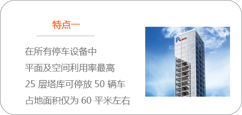 1、在所有停車設(shè)備中,平面及空間利用率高,25層塔庫可停放50輛車,占地面積僅為60平米左右;