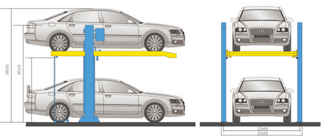 簡易升降類停車設備在各類車庫中具有停車密度高、對場地要求低、噪聲小、結構簡單、使用方便、出車速度快、地面無遮擋等諸多優點,使地面使用效率大大增加,有限的空間可成倍的停放車輛。下面展示的兩層簡易升降停車設備構造簡單、緊湊,經濟適用,采用PLC控制,多種操作方式,存取車容易,布局靈活,節能降耗,設備所需電源220V,所以不僅適用于大型車庫、停車場,也適用各個家庭用戶。